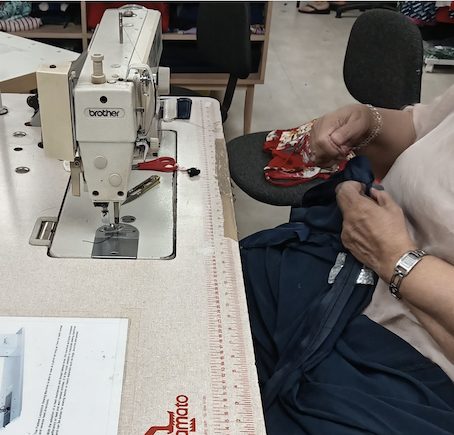On Tuesday 9th September, the most recent session welcomed 12 local creatives and community members who brought along worn garments and second-hand finds to breathe new life into them. Attendees worked on a variety of clothing, including trousers, blouses, dresses, and tops, with one standout project featuring a pair of second-hand Levi’s reimagined with custom zip detailing – a great example of how upcycling can turn the old into something new and unique.