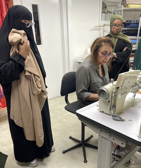 Leila and Jasmin helped out with sewing and advising the attendees on how to make certain garments. Overall, the ladies who took part enjoyed the event and took a strong liking to sewing and upcycling.