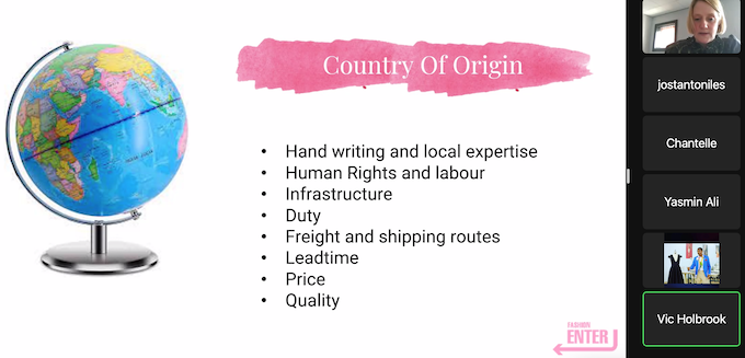 On Wednesday 22nd March from 10am Fashion-Enter Ltd’s Deputy CEO Jackie Bertram presented a free 2-hour masterclass on local and international sourcing. Attendees included FC Designer Workspace learners as well as individuals online.