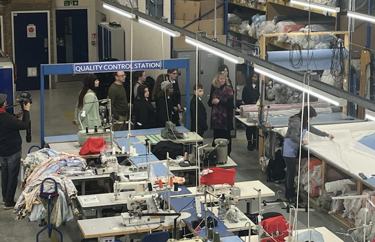 Jenny took the group to each work station on the factory floor and answered the students questions on the FEL’s working practices and goals to reduce carbon emissions. She also explained how the company instills sustainable practices with its learners and designers at the Fashion Technology Academy and FC Designer Workspace in Islington.