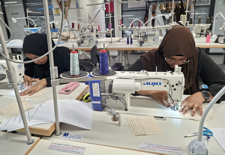 Participants were introduced to a range of essential techniques, including pattern cutting, sewing, and garment construction. Many had the opportunity to work with industrial sewing machines for the first time, gaining valuable insight into professional practices. The session also explored interior textiles, encouraging attendees to think beyond traditional fashion applications and consider how sustainable methods can extend into homeware or product design.