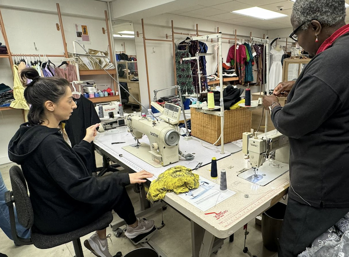 This session was quieter than usual with 10 individuals visiting the FC Designer Collective shop with their items of clothing to work on. Most that attended worked on upcycles, transforming old garments into new, wearable items. One individual that has attended before said that she ‘gets emotional with every upcycle’ and that she is ‘grateful for these free, drop-in’s’ where she can use industrial equipment and gain expert advice.