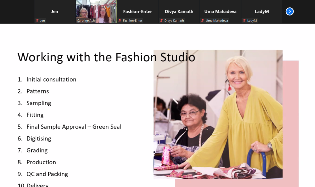 Before starting the presentation, Caroline explained the many services of Fashion-Enter and focused on our key values, ethical manufacturing in the UK, and educating the next generation of skilled workers.